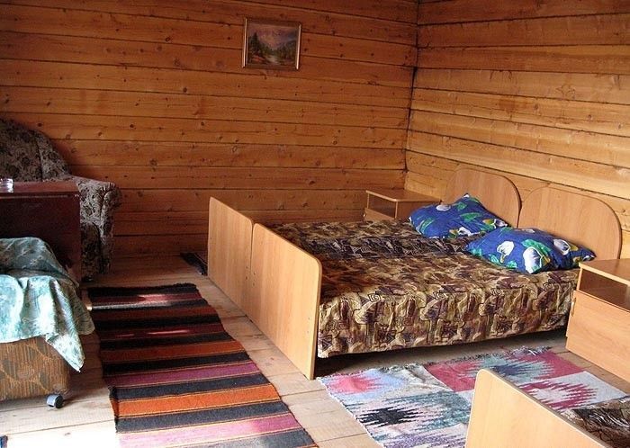 Турбаза предлагает гостям размещение в домах из натурального дерева. Номерной фонд рассчитан на 30 гостей. В номерах минимум удобств, кровати (двуспальная кровать в 2-местном номере, или односпальные кровати и раскладные диваны в многоместных номерах) прочая необходимая мебель – стол, стулья, тумбочки для хранения вещей. Постельные принадлежности предоставляются для каждого гостя. 1 2-местный номер.