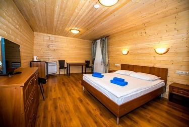 Для проживания предоставляются комфортные номера и дома-срубы. Дети в возрасте до пяти лет размещаются бесплатно. При оформлении в аренду одного из тридцати предлагаемых коттеджей приятным дополнением становится доставка завтрака.