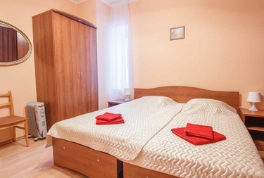 Стандарт :Однокомнатный номер (с балконом/без балкона). Две односпальные кровати, шкаф, прикроватные тумбочки, стул, телевизор. Душевая кабина и туалет в номере.
